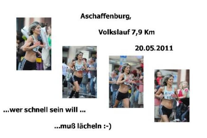 Nun, es war eine Zeit in der hauptsächlich "Training" angesagt war und ich nutzte einige Volks-Läufe, um meine Form immer wieder mal zu testen. Mein Sohn Manuel hat mich mit Trainingsplänen versorgt, die ich trotz einiger "kleinen" Verletzungen einzuhalten versuchte. Es hat mir viel Spaß bereitet und ich möchte mich auch bei Sarah Giebel bedanken, die mich hin und wieder begleitete.